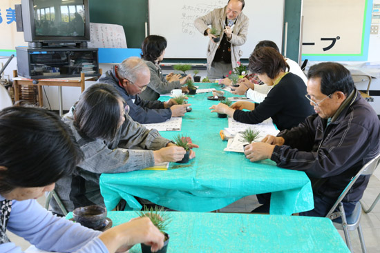 松特に黒松は氣を整え精神統一や癒やし免疫力には最良な氣を持つ代表的な樹木です。この講習では黒松(小盆栽)の見分け方(赤松は芽が赤い・黒松は白い)から良い木の選び方古葉の取り方、剪定の仕方(樹勢を整える為の手入れ)植え込み方の実習でした。